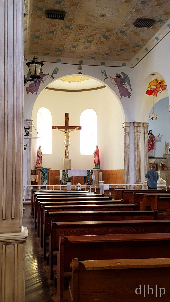 We are soon on our way to the last mission. It is the San Elizario Chapel and just a short distance down the road. Sal Elizario is a community with a rich history and we arrive at the mission in a matter of minutes. Inside, we are invited to watch a short video of the area and learn a great deal about San Elizario. The outside of the building belies the fact that it was just renovated a few years ago.