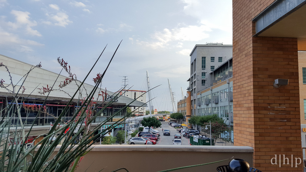 They finish at 6 and our train will arrive at 6:18. We need to book it back to the station quick, quick, quick. We make it and ride all the way down to Mockingbird Station. From there we will catch the blue train, but have a few minutes to wait. That means we have time for a bathroom break.The view of the new bridge near Mockingbird Station is appealing to me and I peek for a few minutes while waiting for my sweetheart. This ENTIRE bridge is a biking/walking bridge. Pretty cool indeed.