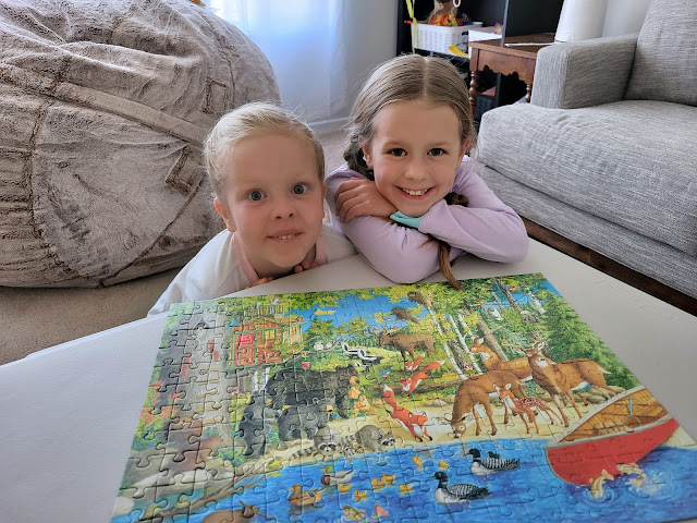 That's how the day goes. Playing, playing, and more playing. I'm loving it all. Grandpa and I go to drop J.P. off at pre-school and do the after school pick-ups since the girls have early out today.
